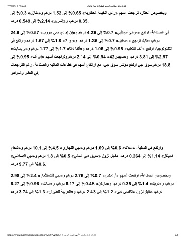 2.98 ﻰﻟإ %2.4 «رﺎﻣﺛﺗﺳﻼﻟ ﻲﺑد»و مھرد 2.76 ﻰﻟإ %0.7 «سﻛﻣارأ» مﮭﺳأ تﻌﻔﺗرا ،ﺔﻋﺎﻧﺻﻟا صوﺻﺧﺑو