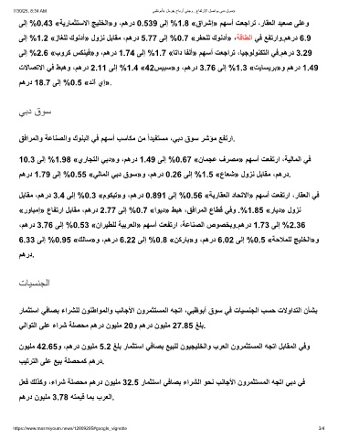،مھرد 3.76 ﻰﻟإ %0.53 «نارﯾطﻠﻟ ﺔﯾﺑرﻌﻟا» مﮭﺳأ تﻌﻔﺗرا ،ﺔﻋﺎﻧﺻﻟا صوﺻﺧﺑو.مھرد 1.73 ﻰﻟإ %2.36