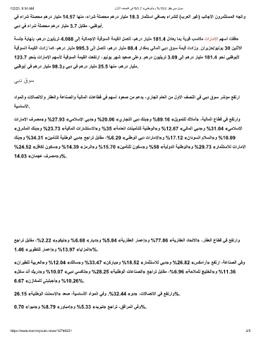 123.7 وﺣﻧﺑ تارﺎﻣﻹا مﮭﺳﻷ ﺔﯾﻗوﺳﻟا ﺔﻣﯾﻘﻟا تﻌﻔﺗرا ،وﯾﻧوﯾ رﮭﺷ دﯾﻌﺻ ﻰﻠﻋو .مھرد نوﯾﻠﯾرﺗ 3.09 ﻰﻟإ مھرد رﺎﯾﻠﻣ 181.4 وﺣﻧ ﻲﺑظوﺑﻷ