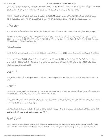 ﻰﻟإ % 0.17 (ﻲﺟدﺎﻓ) ﻲﺑظوﺑأ قوﺳ رﺷؤﻣ عﺎﻔﺗرا ﻊﻣ ،2025 وﯾﻟوﯾ رﮭﺷ تﺎﺳﻠﺟ مﺎﺗﺧ ﻲﻓ تارﺎﻣﻹا مﮭﺳأ تارﺷؤﻣ ءادأ نﯾﺎﺑﺗ ،ﻲﻣوﯾﻟا ءادﻷا ىوﺗﺳﻣ ﻰﻠﻋو