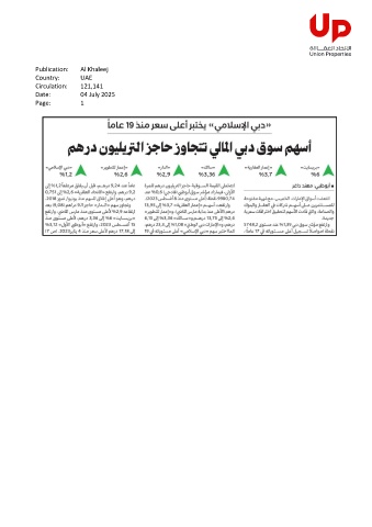 Publication: Al Khaleej Country: UAE Circulation: 121,141 Date: 04 July 2025 Page: 1