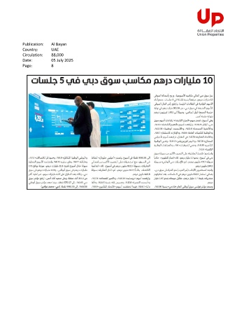 Publication: Al Bayan Country: UAE Circulation: 88,000 Date: 05 July 2025 Page: 8