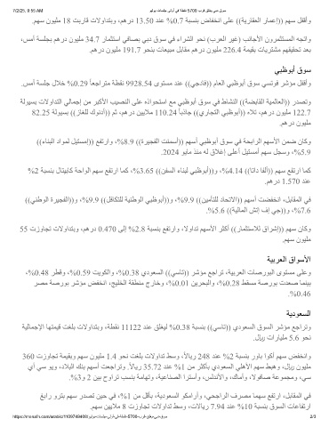 ،%0.48 ﺮﻄﻗو ،%0.59 ﺖﯾﻮﻜﻟاو ،%0.38 يدﻮﻌﺴﻟا ((ﻲﺳﺎﺗ)) ﺮﺷﺆﻣ ﻊﺟاﺮﺗ ،ﺔﯿﺑﺮﻌﻟا تﺎﺻرﻮﺒﻟا ىﻮﺘﺴﻣ ﻰﻠﻋو