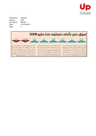 Publication: Al Bayan Country: UAE Circulation: 88,000 Date: 10 July 2025 Page: 1