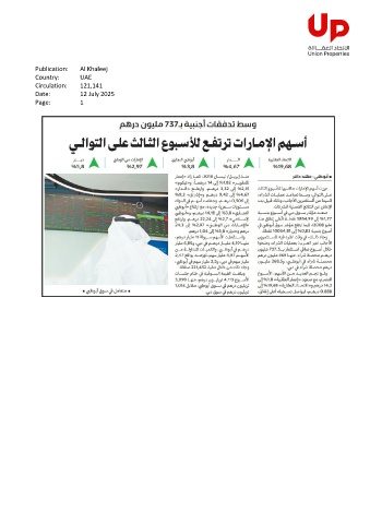 Publication: Al Khaleej Country: UAE Circulation: 121,141 Date: 12 July 2025 Page: 1