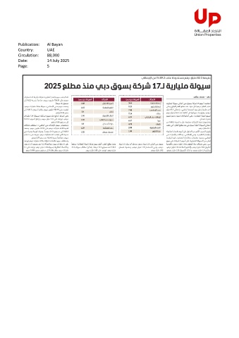 Publication: Al Bayan Country: UAE Circulation: 88,000 Date: 14 July 2025 Page: 5