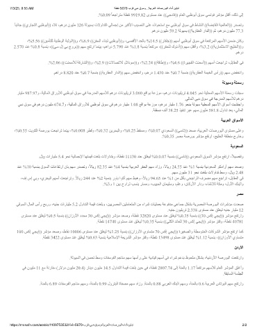 2.570 ﺪﻨﻋ %0.8 ﺔﺒﺴﻨﺑ ،((ﻲﺳ لإ ﻲﺑ جوﺮﺑ)) ﻢﮭﺳ ﻊﻔﺗرا ﺎﻤﻨﯿﺑ ،ﻢھارد 5.790 ﺪﻨﻋ %1.8 ﺔﺒﺴﻨﺑ ً ﺎﻌﻔﺗﺮﻣ ،((ﺮﻔﺤﻠﻟ كﻮﻧدأ)) ﻢﮭﺳ ﻞﻔﻗأو ،%3.2 ((ﺔﯾرﺎﻤﺜﺘﺳﻻا ﺞﯿﻠﺨﻟا))و