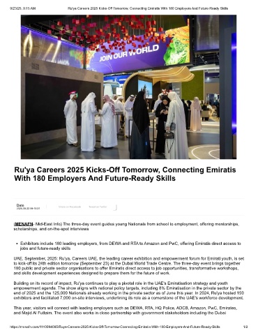 9/23/25, 9:15 AM Ru'ya Careers 2025 Kicks-Off Tomorrow, Connecting Emiratis With 180 Employers And Future-Ready Skills