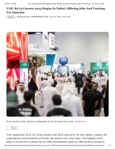 9/23/25, 9:15 AM UAE: Ru’ya Careers 2025 begins in Dubai, offering jobs and training for emiratis | World News - The Times of India