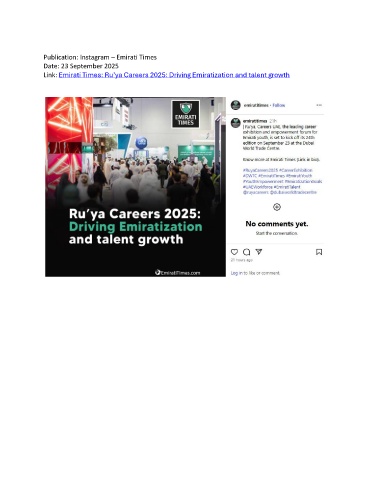 Publication: Instagram – Emirati Times Date: 23 September 2025 Link: Emirati Times: Ru’ya Careers 2025: Driving Emiratization and talent growth