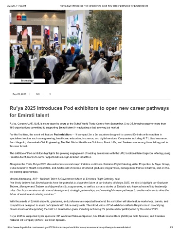 9/23/25, 11:42 AM                   Ru’ya 2025 introduces Pod exhibitors to open new career pathways for Emirati talent