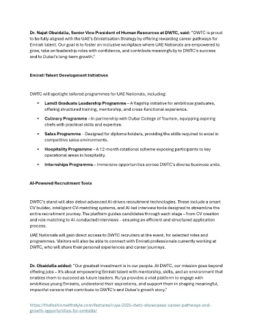 impactful careers that contribute to DWTC’s and Dubai’s growth story.”