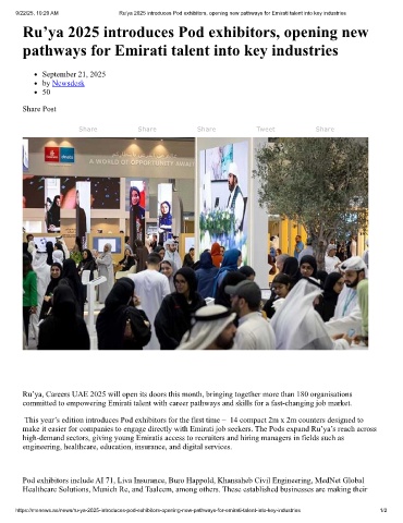 9/22/25, 10:20 AM Ru’ya 2025 introduces Pod exhibitors, opening new pathways for Emirati talent into key industries