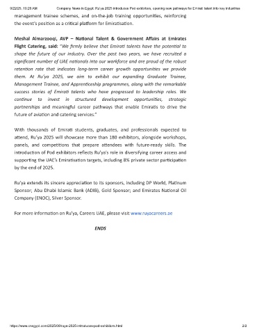 9/22/25, 10:20 AM Company News in Egypt: Ru’ya 2025 introduces Pod exhibitors, opening new pathways for Emirati talent into key industries