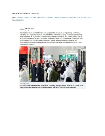 Publication: Facebook – Mid East Link: Mid East: Ru’ya 2025 introduces Pod exhibitors, opening new pathways for Emirati talent into key industries