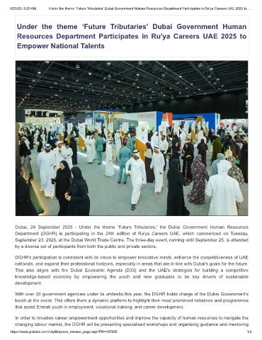 9/25/25, 9:29 AM Under the theme ‘Future Tributaries' Dubai Government Human Resources Department Participates in Ru'ya Careers UAE 2025 to …