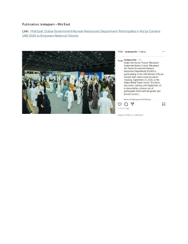 Publication: Instagram – Mid East Link: Mid East: Dubai Government Human Resources Department Participates in Ru’ya Careers UAE 2025 to Empower National Talents
