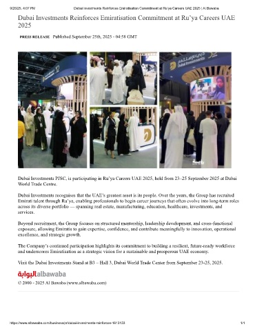 9/26/25, 4:07 PM Dubai Investments Reinforces Emiratisation Commitment at Ru’ya Careers UAE 2025 | Al Bawaba