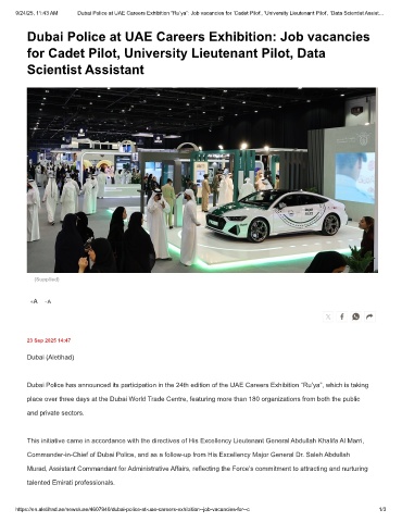 9/24/25, 11:43 AM Dubai Police at UAE Careers Exhibition “Ru’ya”: Job vacancies for ‘Cadet Pilot’, ‘University Lieutenant Pilot’, ‘Data Scientist Assist…