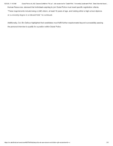 9/24/25, 11:43 AM Dubai Police at UAE Careers Exhibition “Ru’ya”: Job vacancies for ‘Cadet Pilot’, ‘University Lieutenant Pilot’, ‘Data Scientist Assist…