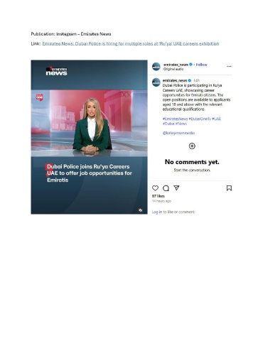 Publication: Instagram – Emirates News Link: Emirates News: Dubai Police is hiring for multiple roles at ‘Ru’ya’ UAE careers exhibition