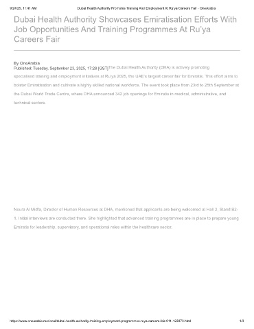 9/24/25, 11:41 AM Dubai Health Authority Promotes Training And Employment At Ru’ya Careers Fair - OneArabia