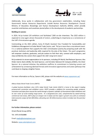 Exhibitions Management at Dubai World Trade Centre, said: “Ru’ya is more than a recruitment event.