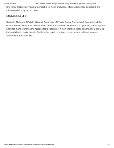 Emirati Human Resources Development Council, explained, “When a CV is uploaded, the AI system