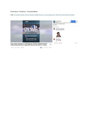 Publication: Facebook – Emirates News Link: Emirates News: Ru'ya Careers UAE returns, connecting over 150 firms with Emirati talent