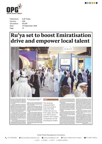 Publication: Gulf Today Country: UAE Circulation: 49,500 Date: 15 September 2025 Page: 15