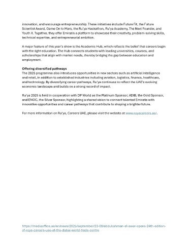 and technology. By diversifying career pathways, Ru’ya continues to reflect the UAE’s evolving