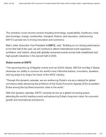 9/8/25, 4:45 PM Dubai events 2025: DWTC announces 135 events including GITEX Global, WETEX and Big 5 Global - Arabian Business: Latest Ne…