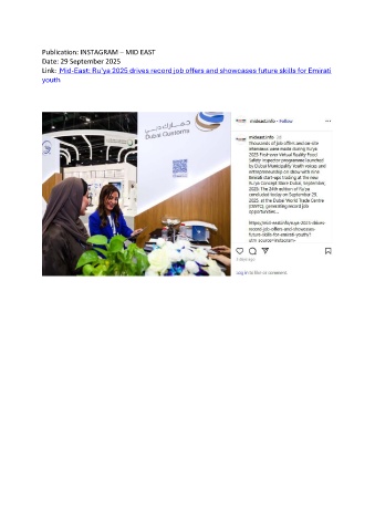 Publication: INSTAGRAM – MID EAST Date: 29 September 2025 Link: Mid-East: Ru’ya 2025 drives record job offers and showcases future skills for Emirati youth