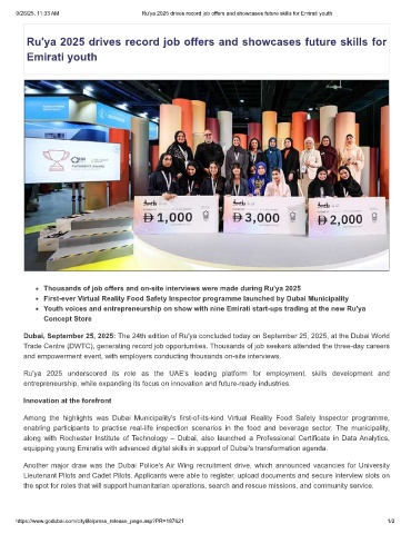 9/26/25, 11:33 AM Ru'ya 2025 drives record job offers and showcases future skills for Emirati youth