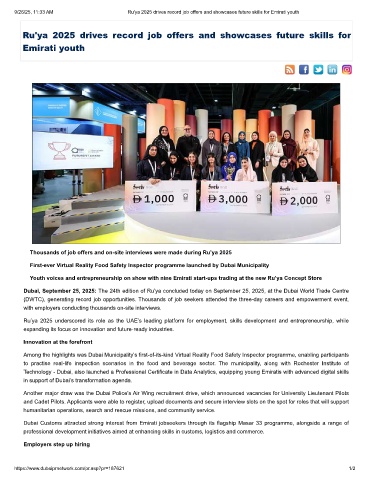 9/26/25, 11:33 AM Ru'ya 2025 drives record job offers and showcases future skills for Emirati youth