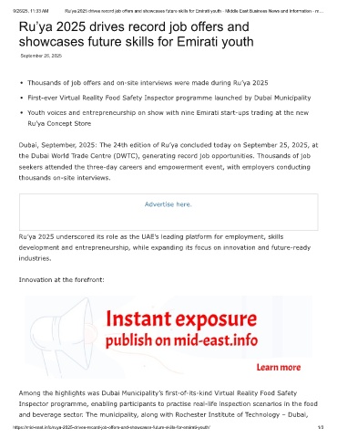 9/26/25, 11:33 AM Ru’ya 2025 drives record job offers and showcases future skills for Emirati youth - Middle East Business News and Information - m…