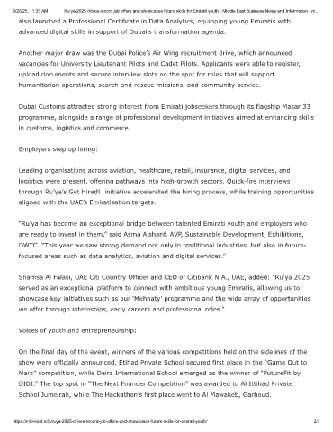 9/26/25, 11:33 AM Ru’ya 2025 drives record job offers and showcases future skills for Emirati youth - Middle East Business News and Information - m…