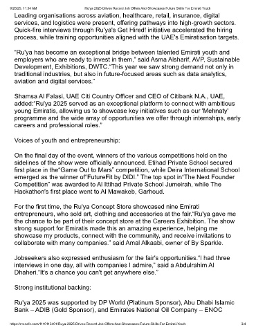 9/26/25, 11:34 AM Ru'ya 2025 Drives Record Job Offers And Showcases Future Skills For Emirati Youth
