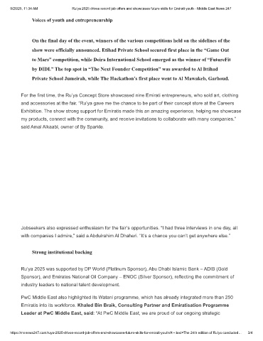 9/26/25, 11:34 AM Ru’ya 2025 drives record job offers and showcases future skills for Emirati youth - Middle East News 247