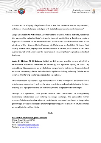 Judge Dr Ebtisam Ali Al Badwawi Added, “At DJI, we are proud to partner with SLC, a