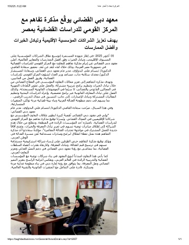 ﺔﯿﺋﺎﻀﻘﻟا تﺎﺳارﺪﻠﻟ ﻲﻣﻮﻘﻟا ﺰﻛﺮﻤﻟا ﻊﻣ نوﺎﻌﺘﻠﻟ ﻢھﺎﻔﺗ ةﺮﻛﺬﻣ ماﺮﺑإ ﻦﻋ ﻲﺋﺎﻀﻘﻟا ﻲﺑد ﺪﮫﻌﻣ