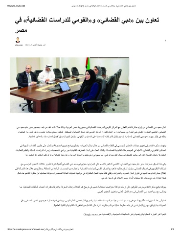ﻰﻟإ ﺔﻛاﺮﺸﻟا هﺬھ لﻼﺧ ﻦﻣ ﻊﻠﻄﺘﻧو .ﺔﻘﻄﻨﻤﻟا ﻲﻓ ةﺪﺋاﺮﻟا تﺎﺴﺳﺆﻤﻟا ﻦﻣ هرﺎﺒﺘﻋﺎﺑ ،ﺔﯿﺋﺎﻀﻘﻟا تﺎﺳارﺪﻠﻟ ﻲﻣﻮﻘﻟا ﺰﻛﺮﻤﻟا ﻊﻣ ﻢھﺎﻔﺗ ةﺮﻛﺬﻣ ﻊﯿﻗﻮﺗ ﺎﻧ ّ ﺮﺴُﯾو .ﻲﺋﺎﻀﻘﻟا لﺎﺠﻤﻟا ﻲﻓ ﻦﯿﯿﻤﯿﻠﻗﻹا ﺎﻨﺋﺎﻛﺮﺷ