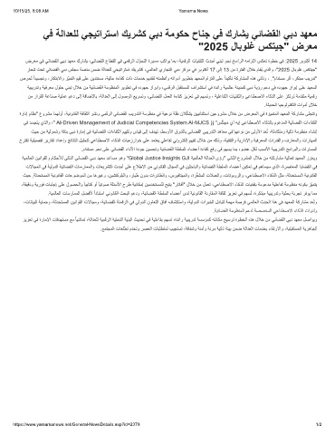 ﺔﯾﻣﻟﺎﻌﻟا نﯾﻧاوﻘﻟاو مﺎﻛﺣﻸﻟ ﻲﻛذﻟا ﻲﺋﺎﺿﻘﻟا ﻲﺑد دﮭﻌﻣ دﻋﺎﺳﻣ وھو "Global Justice Insights GJI ﺔﯾﻣﻟﺎﻌﻟا ﺔﻟادﻌﻟا ىؤر" ﻲﻧﺎﺛﻟا عورﺷﻣﻟا لﻼﺧ نﻣ ﮫﺗﻛرﺎﺷﻣ ﺔﯾﻟﺎﻌﻓ دﮭﻌﻣﻟا ززﻌﯾو