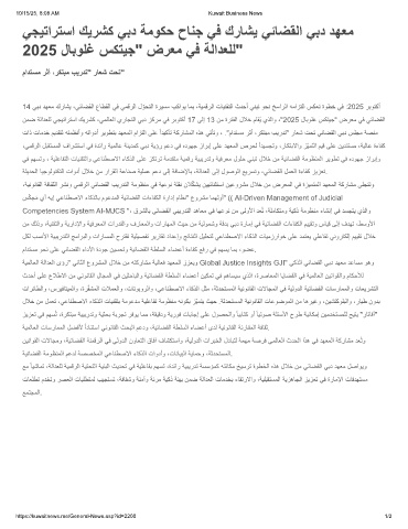 Competencies System AI-MJCS "، قرﺷﻟﺎﺑ ﻲﺋﺎﺿﻘﻟا ﻲﺑﯾردﺗﻟا دھﺎﻌﻣ ﻲﻓ ﺎﮭﻋوﻧ نﻣ ﻰﻟوﻷا دﻌُﺗ ،ﺔﻠﻣﺎﻛﺗﻣو ﺔﯾﻛذ ﺔﻣوظﻧﻣ ءﺎﺷﻧإ ﻲﻓ دﺳﺟﺗﯾ يذﻟاو