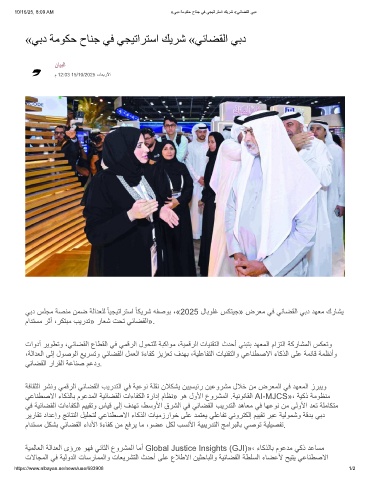 ﻲﺑد سﻠﺟﻣ ﺔﺻﻧﻣ نﻣﺿ ﺔﻟادﻌﻠﻟ ً ﺎﯾﺟﯾﺗارﺗﺳا ً ﺎﻛﯾرﺷ ﮫﻔﺻوﺑ ،«2025 لﺎﺑوﻠﻏ سﻛﺗﯾﺟ» ضرﻌﻣ ﻲﻓ ﻲﺋﺎﺿﻘﻟا ﻲﺑد دﮭﻌﻣ كرﺎﺷﯾ
