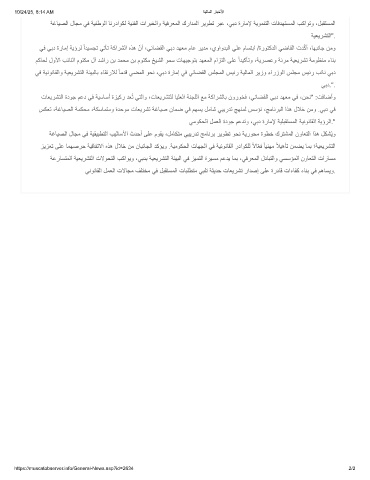 ﻲﻓ ﺔﯾﻧوﻧﺎﻘﻟاو ﺔﯾﻌﯾرﺷﺗﻟا ﺔﺋﯾﺑﻟﺎﺑ ءﺎﻘﺗرﻼﻟ ً ﺎﻣدﻗ ﻲﺿﻣﻟا وﺣﻧ ،ﻲﺑد ةرﺎﻣإ ﻲﻓ ﻲﺋﺎﺿﻘﻟا سﻠﺟﻣﻟا سﯾﺋر ﺔﯾﻟﺎﻣﻟا رﯾزو ءارزوﻟا سﻠﺟﻣ سﯾﺋر بﺋﺎﻧ ﻲﺑد