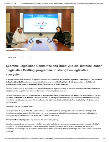 10/27/25, 8:31 AM Supreme Legislation Committee and Dubai Judicial Institute launch ‘Legislative Drafting’ programme to strengthen legislative ecos…