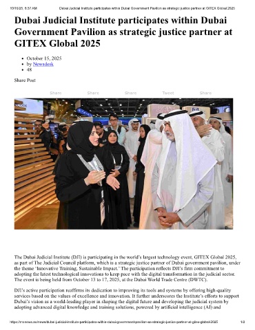 10/16/25, 8:37 AM Dubai Judicial Institute participates within Dubai Government Pavilion as strategic justice partner at GITEX Global 2025