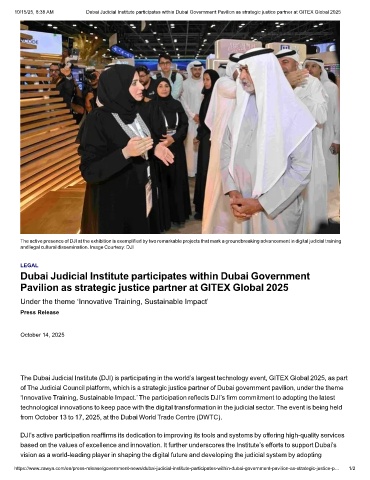 10/15/25, 8:38 AM Dubai Judicial Institute participates within Dubai Government Pavilion as strategic justice partner at GITEX Global 2025