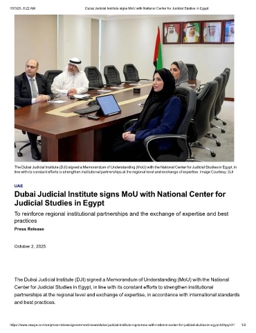 10/3/25, 8:22 AM Dubai Judicial Institute signs MoU with National Center for Judicial Studies in Egypt